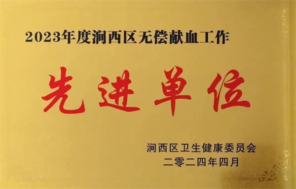 中鋼洛耐榮獲 “2023年度澗西區(qū)無償獻(xiàn)血工作先進單位” 榮譽稱號