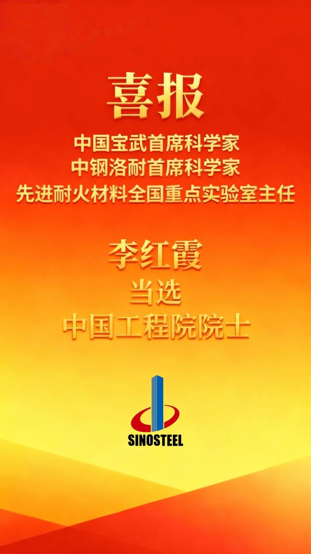 重磅喜訊!中國寶武首席科學(xué)家、中鋼洛耐首席科學(xué)家、先進(jìn)耐火材料全國重點(diǎn)實(shí)驗(yàn)室主任李紅霞,當(dāng)選中國工程院院士!
